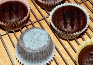 Then mix a box of cake mix (I used dark chocolate fudge) according to directions and spoon into liners.