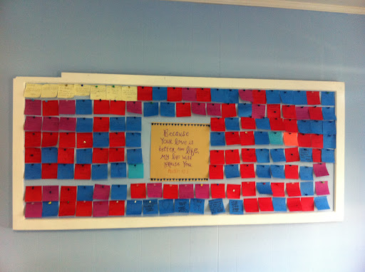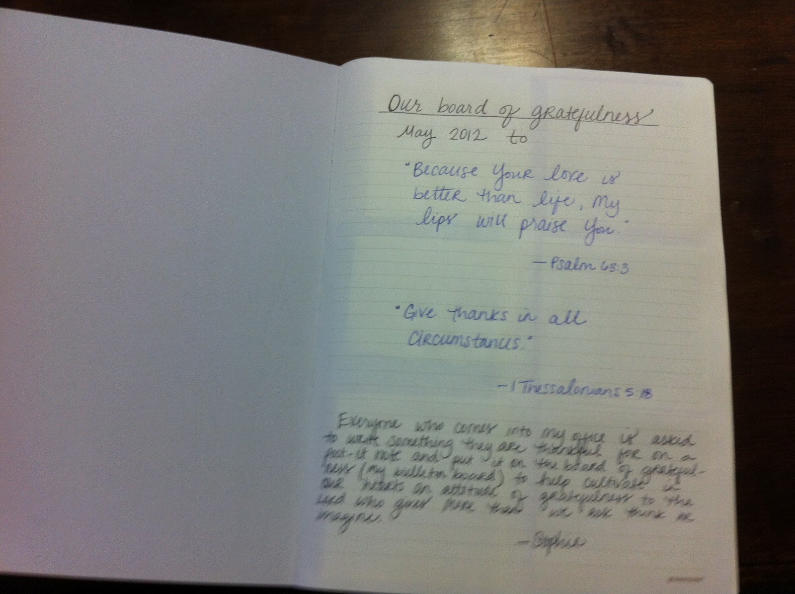 When people come into my office I ask them to write something they are thankful for on a Post-It Note and put it on the bulletin board.