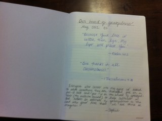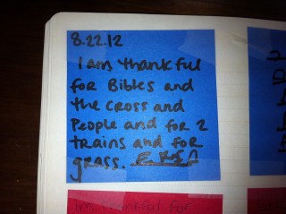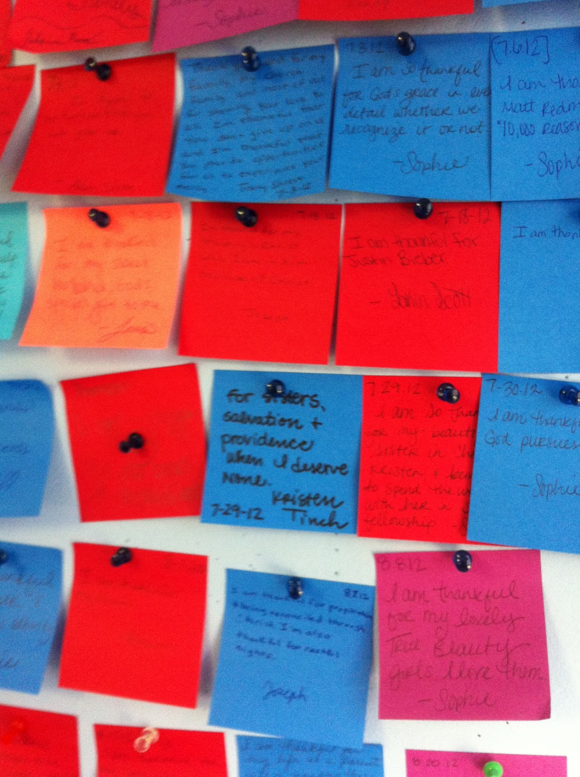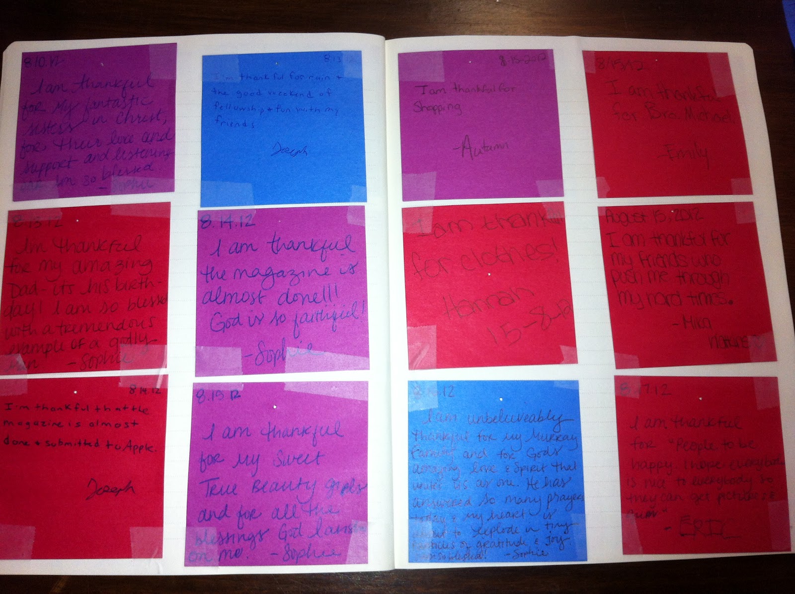 Because we’re going to keep doing this, one of my True Beauty girls and I picked out a cute little composition book to put all the Post-Its in. Now we can have a record of all the things we are thankful for.