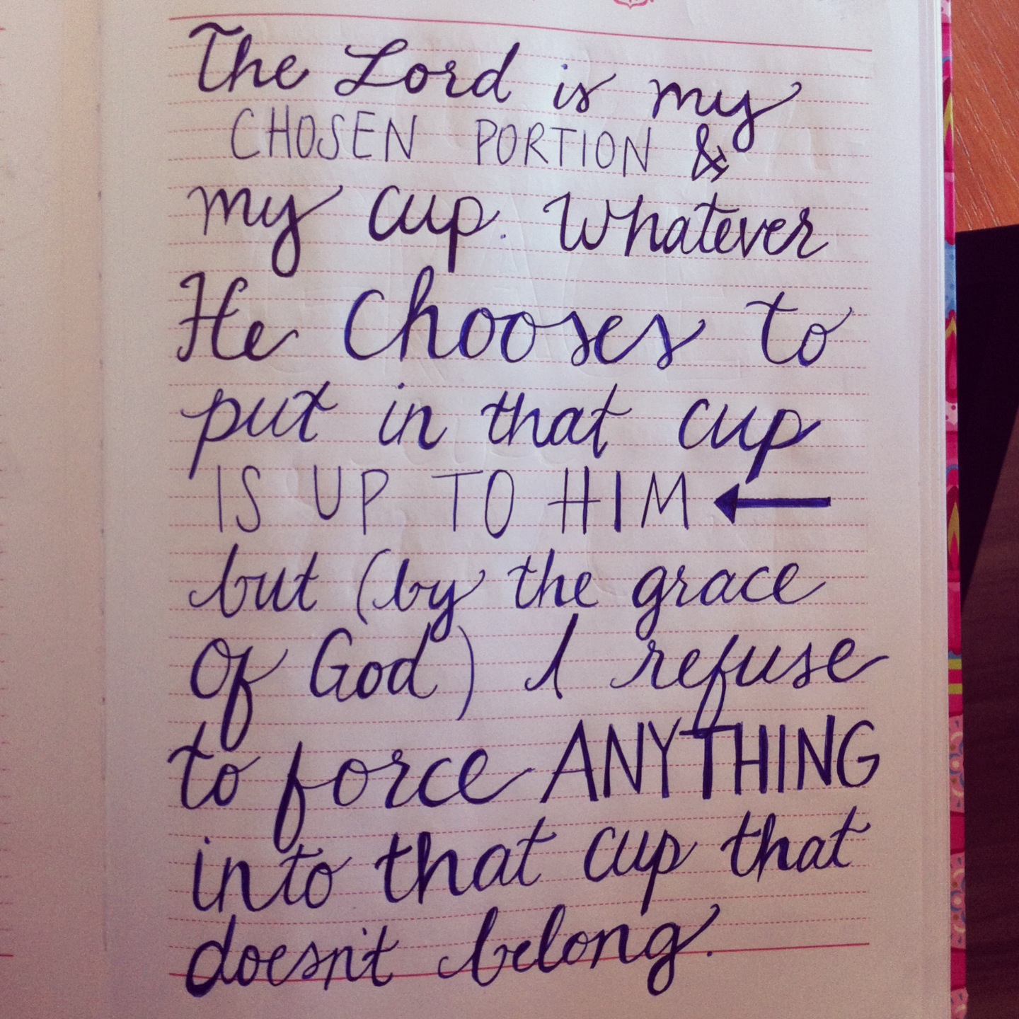 Is this not two of the most beautiful verses ever? It certainly is to me. What hope, comfort and security are tucked gently but fully within these words. God knows my present situations, He holds my cup and my future. He is preparing a beautiful inheritance and because He is my chosen portion I can rest in Him.