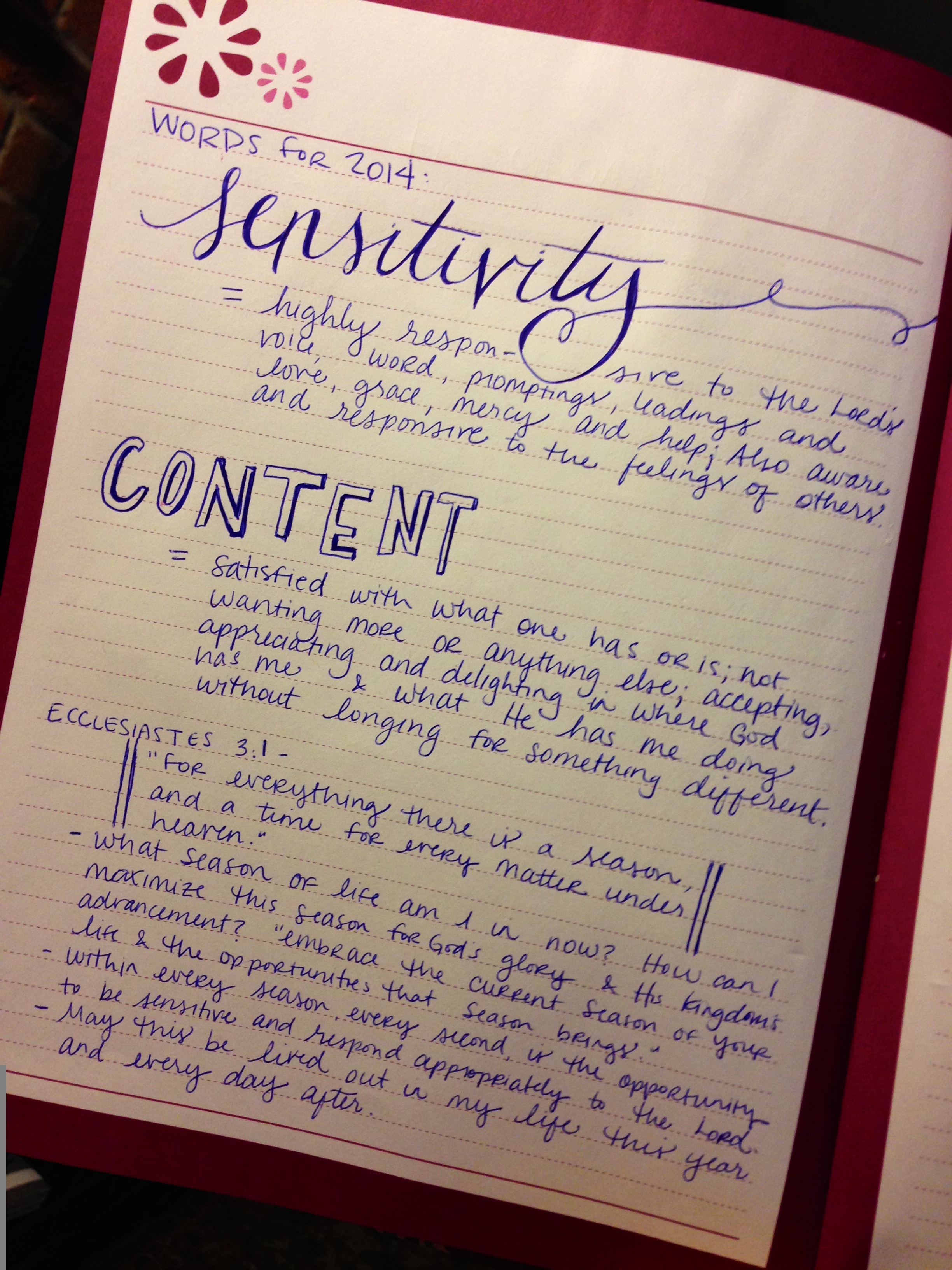 There are lots of areas in which I would like to grow this year (discipline, listening, humility and more), but the two areas God has laid on my heart the heaviest are being sensitive to Him and being content in whatever situation, location or season of life He has me.