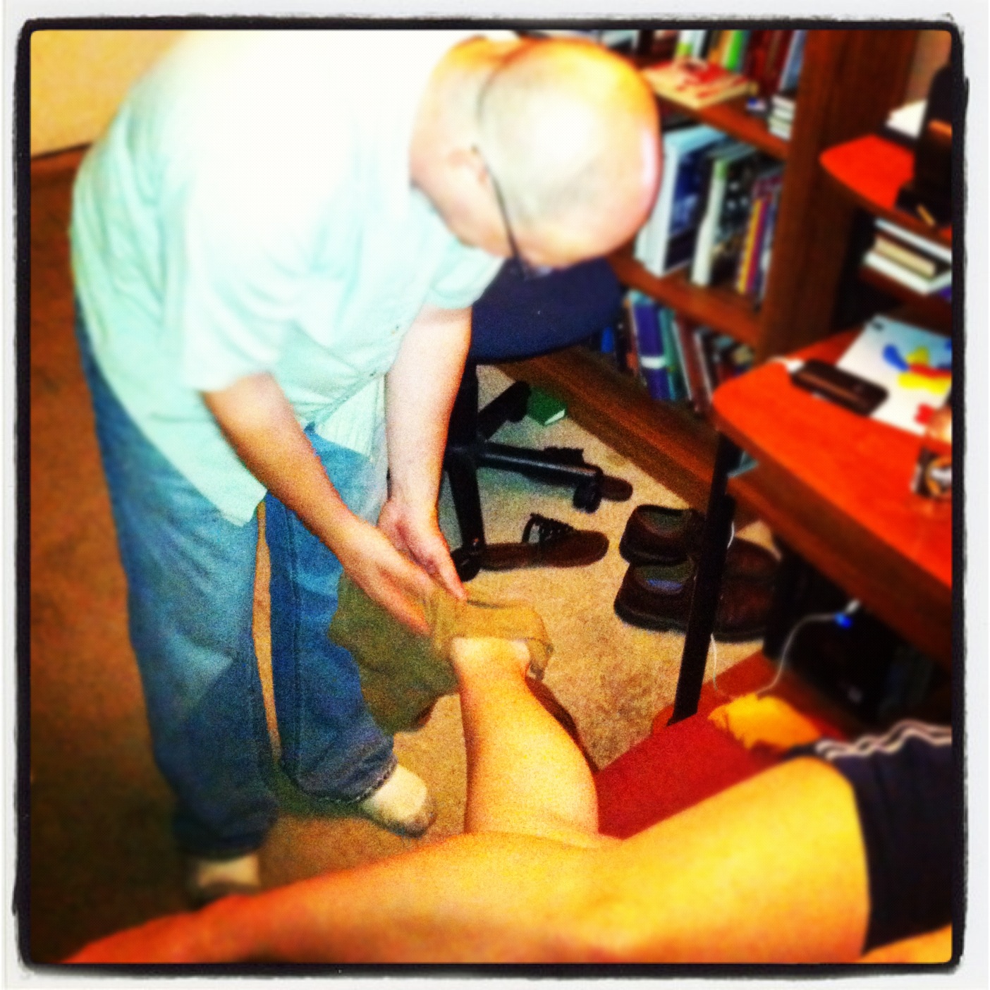 Whitty washing my sister's feet to cool her down last summer when she was so hot.