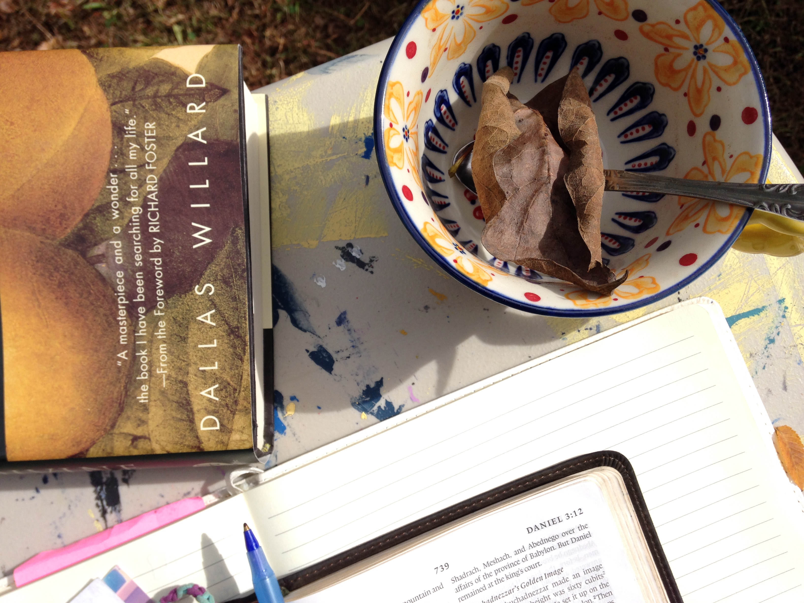 And a Saturday with no plans (which hardly ever happens) means you pull up your paint table outside in the crisp fall air and drink the pumpkin spice brûlée tea with Canadian honey that your best girls gave you while diving into the Word and another good book while watching the gold leaves fall.