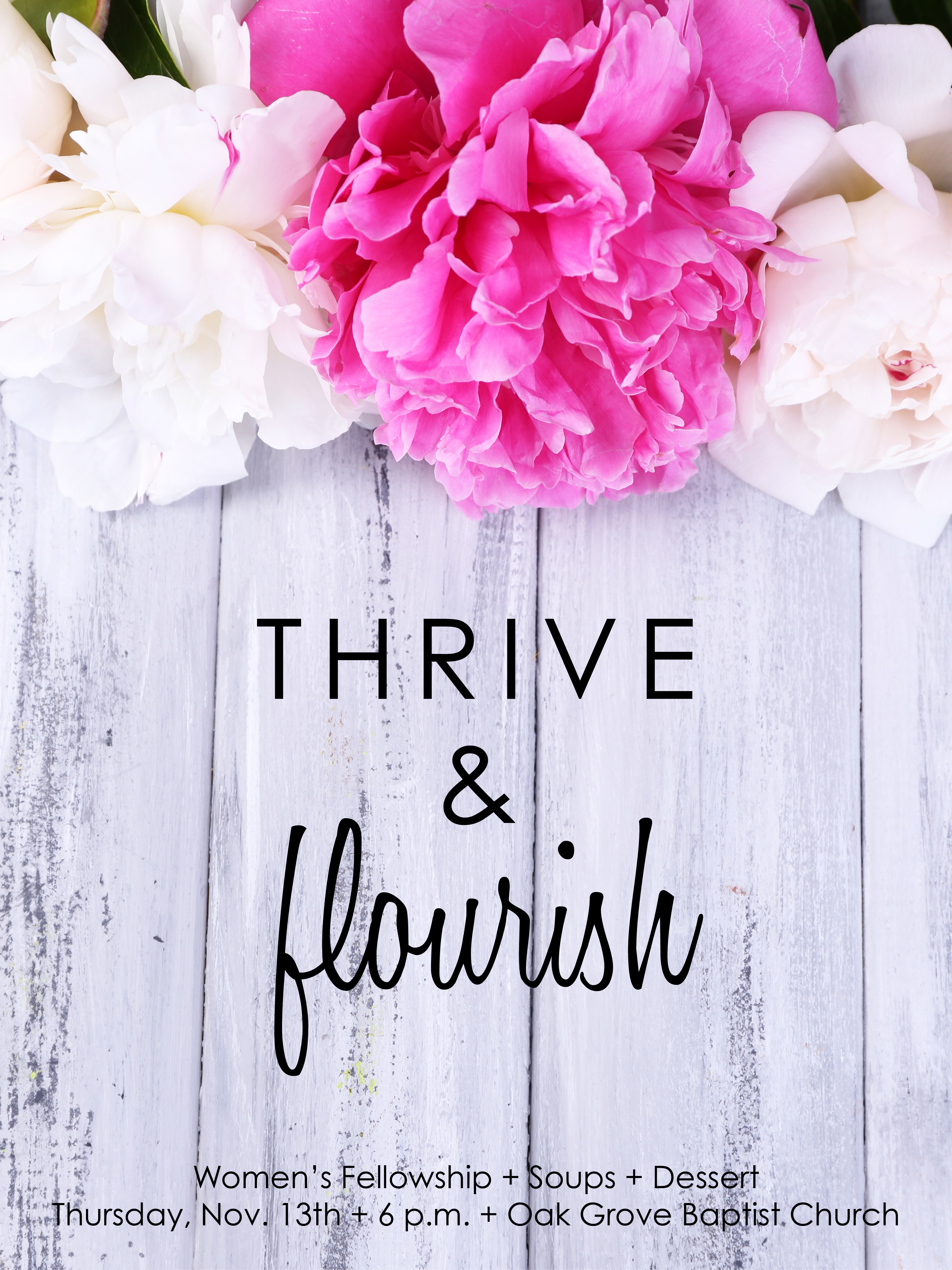 Thrive and Flourish – November An article by Sophie Miller Paducah area ladies—next Thursday is our women’s fellowship! It’s open to the public, so come and invite your friends and bring a dessert. We’ll be discussing how to thrive and flourish in Bible study. Soups and salad will be provided. So excited! Share this: Click to share on X (Opens in new window) X Click to share on Facebook (Opens in new window) Facebook Like Loading... Related