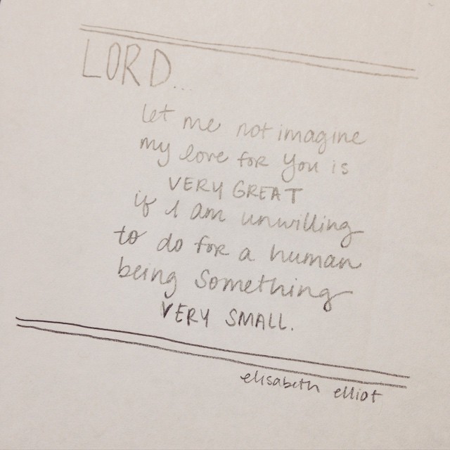 or his button sewed on. Let me not imagine that my love for You is very great if I am unwilling to do for a human being something very small. -Elisabeth Elliot, A Lamp Unto My Feet