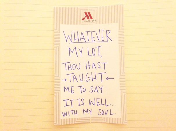 Lots of things and people and lists and dreams and realities. And because all the “its” come filtered through the graceful hands of a holy and loving God, “it” can be well with my soul.